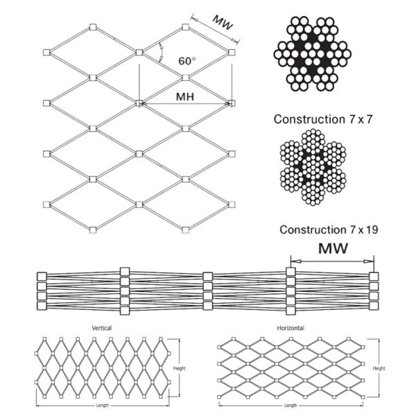 The rhombus mesh of the flexible stainless steel wire cable mesh has outstanding flexibility and durability, making it almost indestructible. It offers the highest level of impact resistance, break resistance force, and can withstand adverse weather conditions such as rain, snow, and hurricanes.
